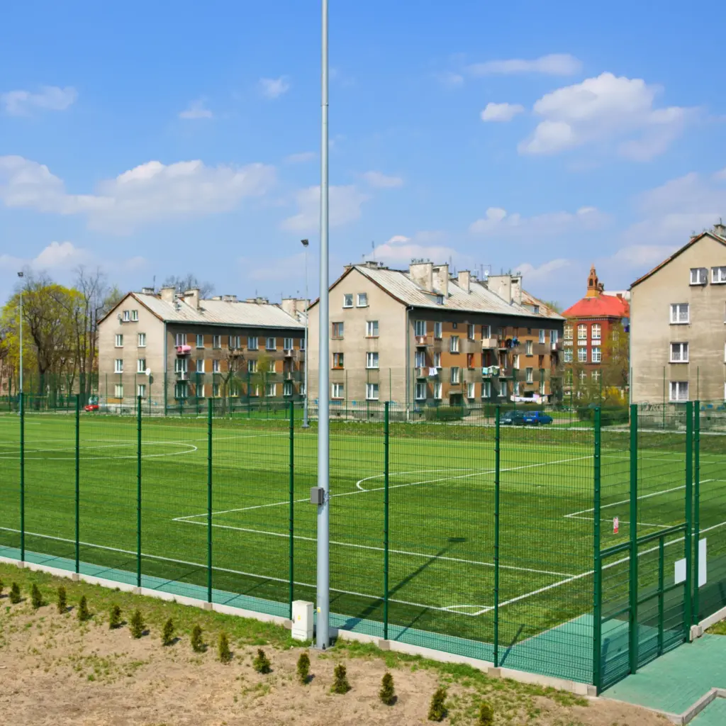 Sportski tereni su također među područjima društvenog života koje ljudi široko koriste. Žičane ograde za sportske terene, koje imaju estetski izgled, imaju i zaštitne karakteristike. Žičane ograde, koje se koriste i pri izgradnji fudbalskih terena i sportskih terena, spadaju među najpotrebnije proizvode. Ovi proizvodi djeluju kao graničnici na fudbalskim terenima, terenima za odbojku, košarku i višenamjenskim terenima kao konstrukcija sportskog terena. Sistemi žičanih ograda takođe mogu privući pažnju mnogih ljudi svojim izdržljivim kao zaštitnici u konstrukcijama. Oni koji žele zaštititi svoju imovinu i sigurnost na svom području mogu odabrati i travnate modele na sportskim terenima. Takvi žičani sistemi se mogu koristiti u integraciji sa sistemima vrata.